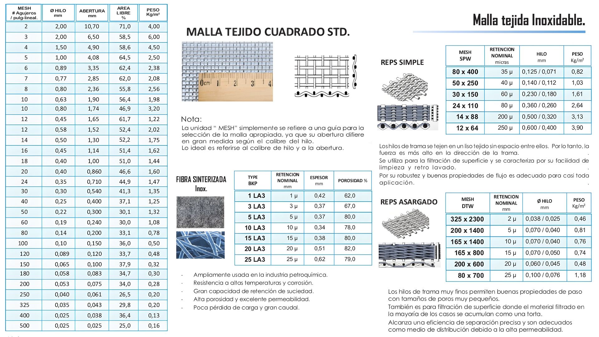 Mallas inoxidables ideales para separar materiales por tamaño, resistentes a la corrosión y con larga vida útil.